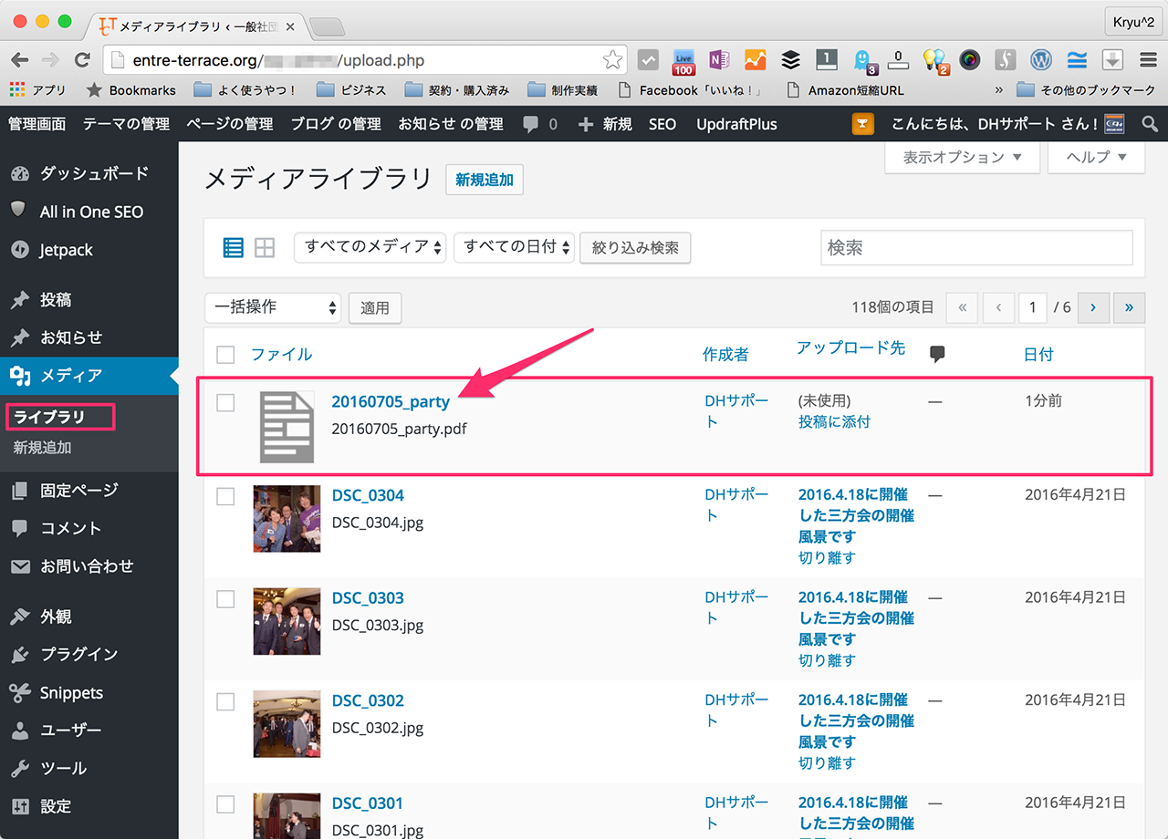 - WordPressの管理画面にログインし、「メディア|新規追加」メニューを開く