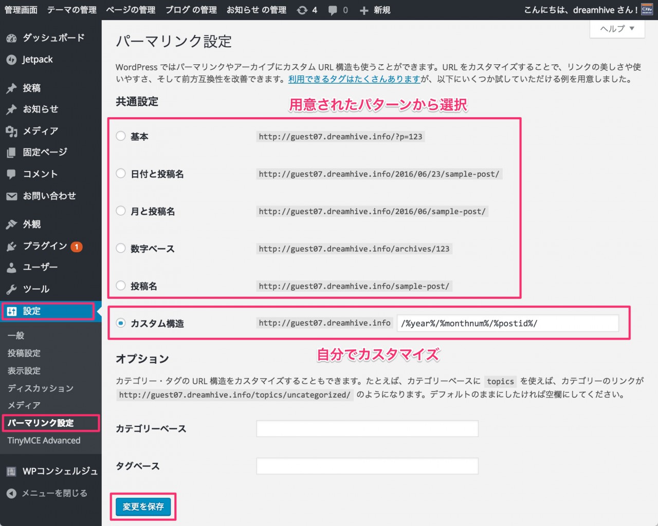 ドリームハイブで製作しているWebのパーマリンク設定は、