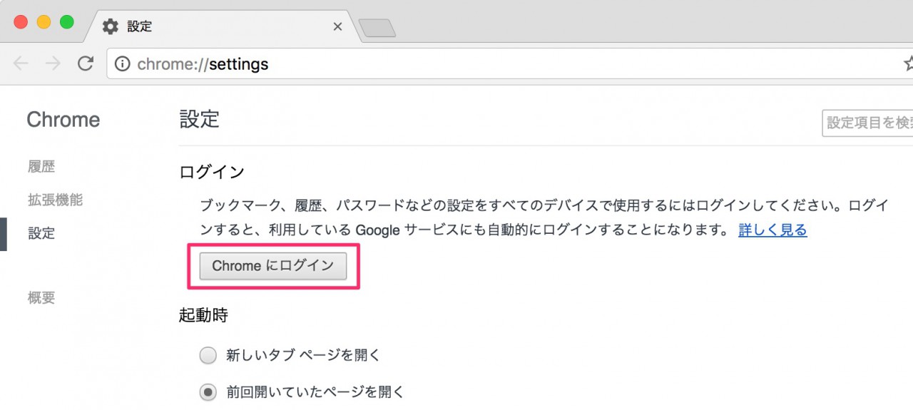 - 「Chromeにログイン」ボタンをクリックする